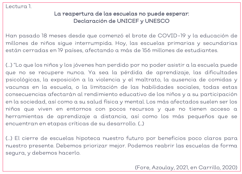 Actividad 1: Reconstruyamos metáforas visuales sobre cómo se vivió el cierre de escuelas